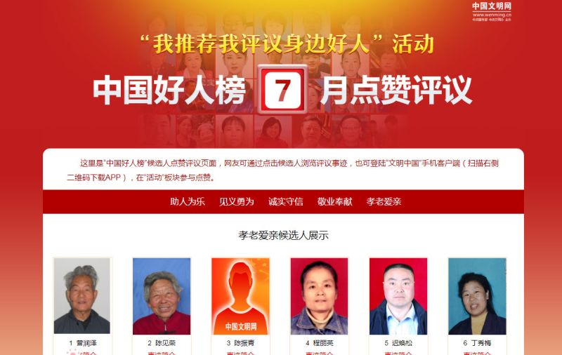 日前、由中央文明办主办、中国文明网承办的“我推荐我评议身边好人”活动2019年7月网络点赞评议正式开始