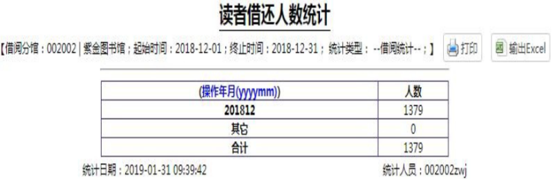 ▶▶12月份读者借还人数共1379人。