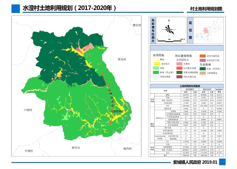 统一部署下,由紫城镇人民政府组织编制完成《紫城镇水澄村土地利用规划(2017-2020年)》。