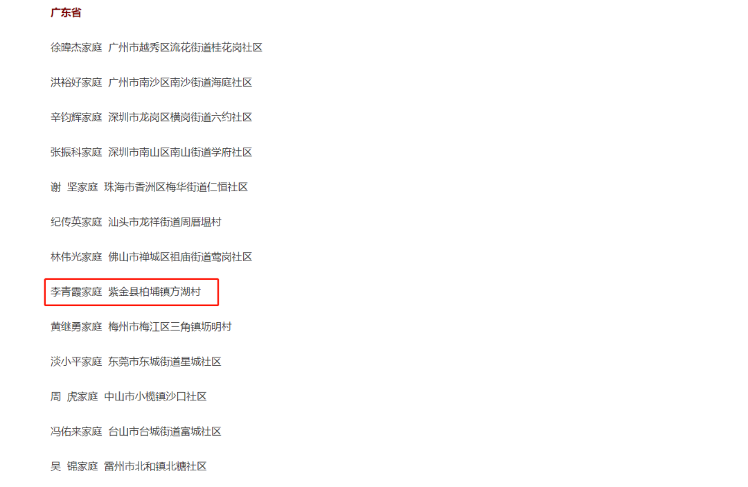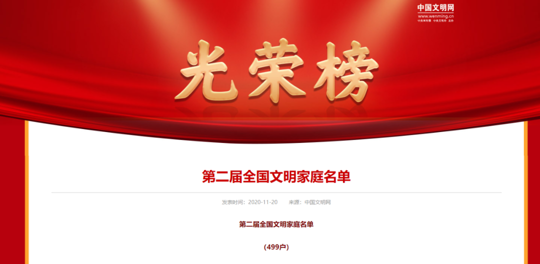 11月20日,中央文明委发布关于表彰第六届全国文明城市、文明村镇、文明单位和第二届全国文明家庭、文明校园及新一届全国未成年人思想道德建设工作先进的决定其中,紫金1户家庭上榜第二届全国文明家庭